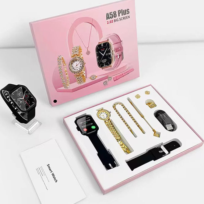 Coffret Cadeau Élégance 7-en-1 – Smartwatch & Parure de Bijoux